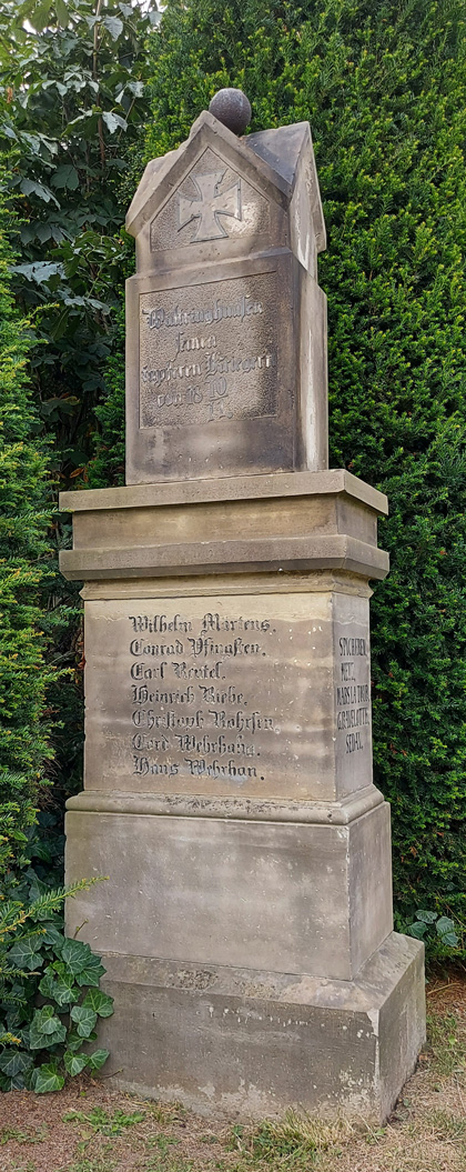 Das Ehrenmal zum Gedenken an die Kriegsteilnehmer 1870/71 steht am Bahnübergang in Waltringhausen. Es gibt eine Infotafel mit Ortsplan und ein Tisch mit Bänken lädt zum Rasten ein.