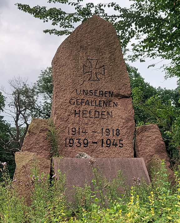 Das Gefallenendenkmal befindet sich an der Wichmarstraße und ist aus Granit. Auf der Rückseite sind die Namen der Gefallenen und Vermissten des 1. Weltkriegs eingehauen, auf der Vorderseite ist eine schräg angestellte Steinplatte mit den Namen der Opfer des 2. Weltkriegs.