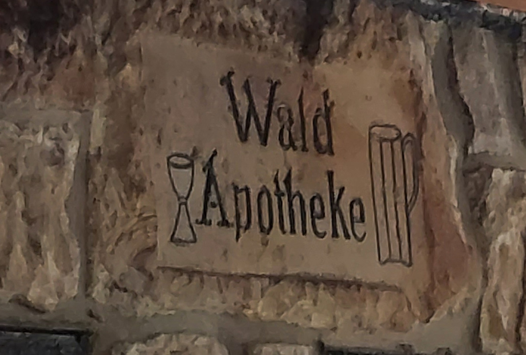 Wilhelm Hunte, der Wirt des Deutschen Hauses in Egestorf, eröffnete 1921 das Waldlokal in einem kleinen Steinbau mit Holzdach. An diesem Platz stand vorher ein von Arbeitern aus dem benachbarten Steinbruch errichteter Unterstand. Von 1900 bis 1921 verbrachten sie hier bei Bier und Korn ihre Pausen. Seinerzeit wurde diese Kombination als Rezept bezeichnet und Rezepte gehören in eine Apotheke. So erhielt der Unterstand den Namen "Waldapotheke", der bis heute erhalten geblieben ist.
