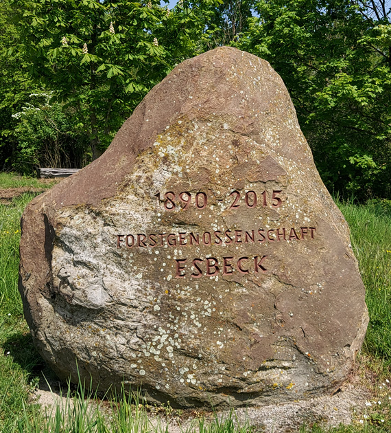 Zum 125jährigen Bestehen der Forstgenossenschaft Esbeck wurde 2015 auf dem Sonnenberg ein 4,5 Tonnen schwerer Gedenkstein aufgestellt. Der Stein stammt aus der Flurbereinigung Mehle und Steinmetzmeister Willi Lohse aus Elze hat ehrenamtlich die Gravur übernommen. Bei der feierlichen Einweihung des Steins wurde daneben ein Feldahorn gepflanzt.