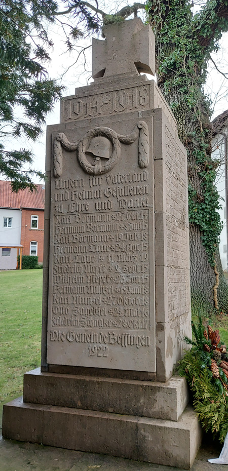 Das Gefallenendenkmal Bessingen befindet sich auf der Grünfläche vor der Kirche.