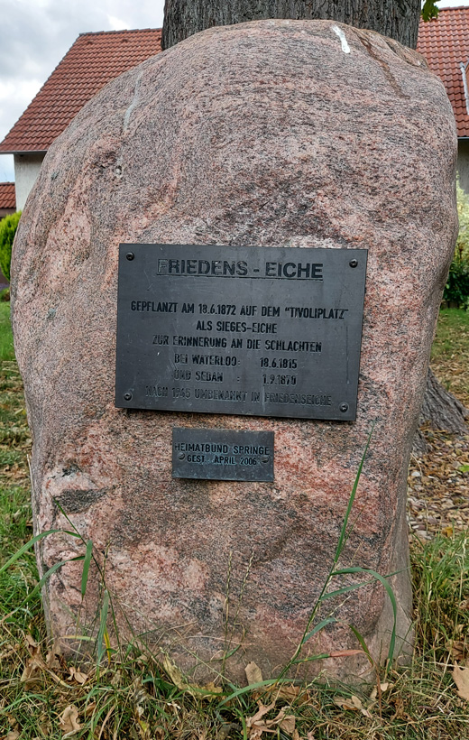 Der Tivoliplatz war von 1858 bis 1980 Springes Festplatz für Volks- und Schützenfeste. Mittelpunkt war die 1872 gepflanzte Eiche zur Erinnerung an die Schlachten bei Waterloo und Sedan. Sie war zugleich Treffpunkt der Veteranen.Quellen: