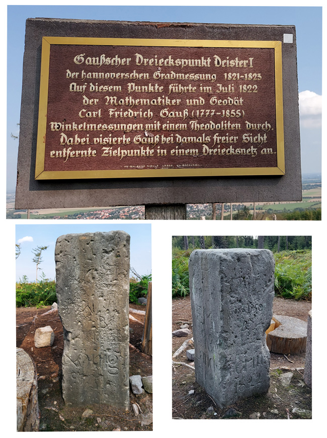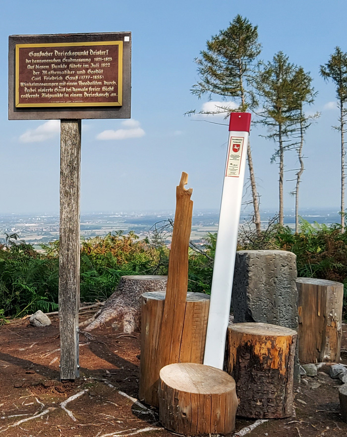 Auf dem Kammweg des Kalenbergs steht der Gaußsche Vermessungsstein. Vom Wanderparkplatz in Bredenbeck gelangt man über die Große Allee und den Königsweg zum Stein, der am Rande einer großen, 2020 gerodeten Fläche steht. Man hat von hier jetzt einen wunderbaren Blick bis nach Hannover, so wie es zur Zeit der Vermessung auch gewesen sein muss.